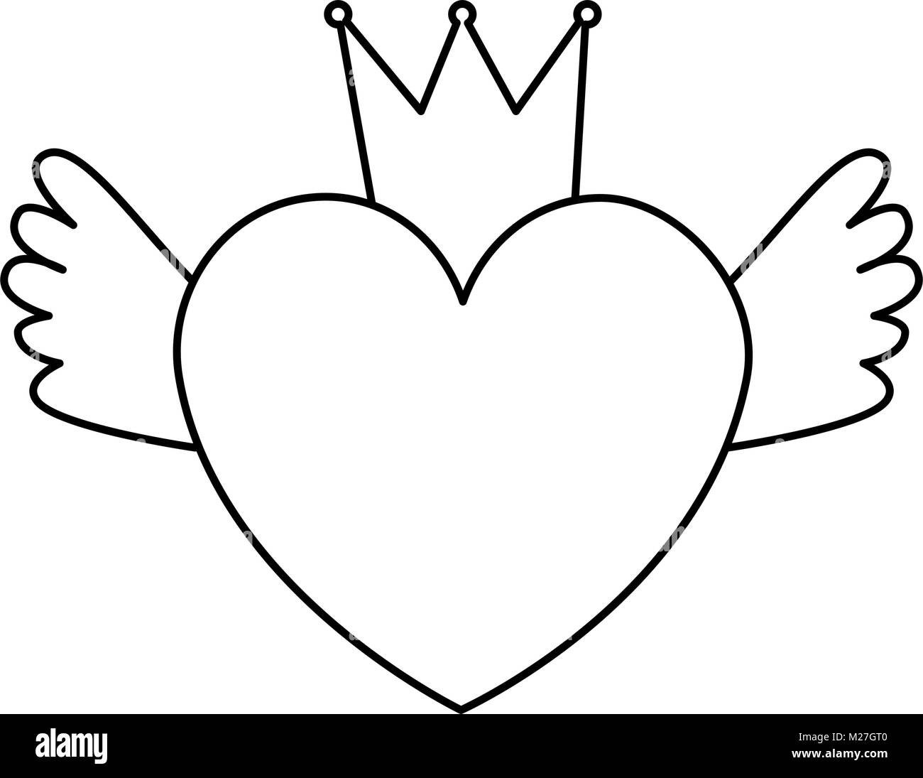 Heart Love With Crown And Wings Vector Illustration Design Stock