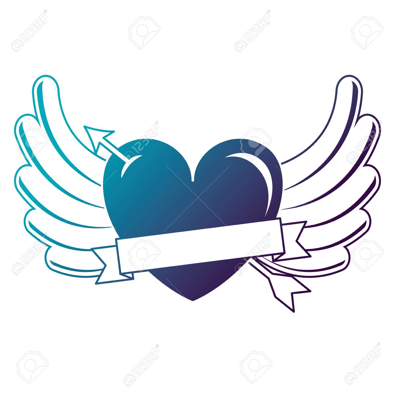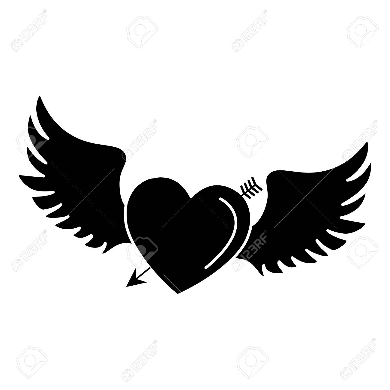 Heart Love With Arrow And Wings Vector Illustration Design Royalty