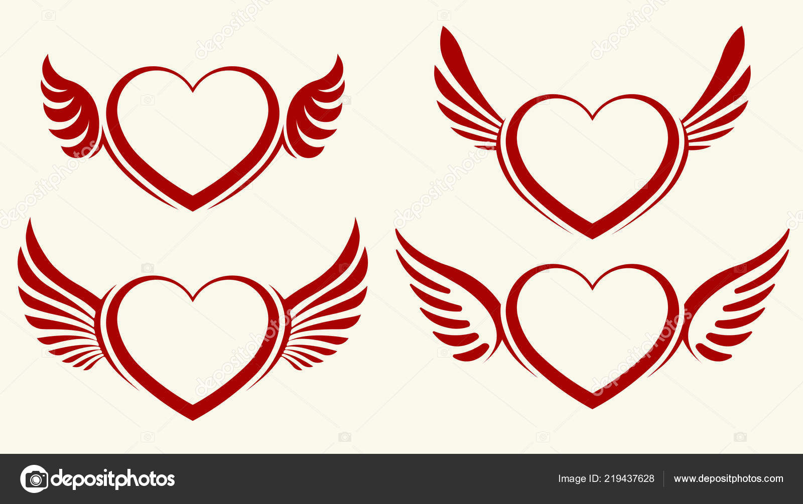 Set Four Red Vector Hearts Wings Stock Vector C Antonshpak