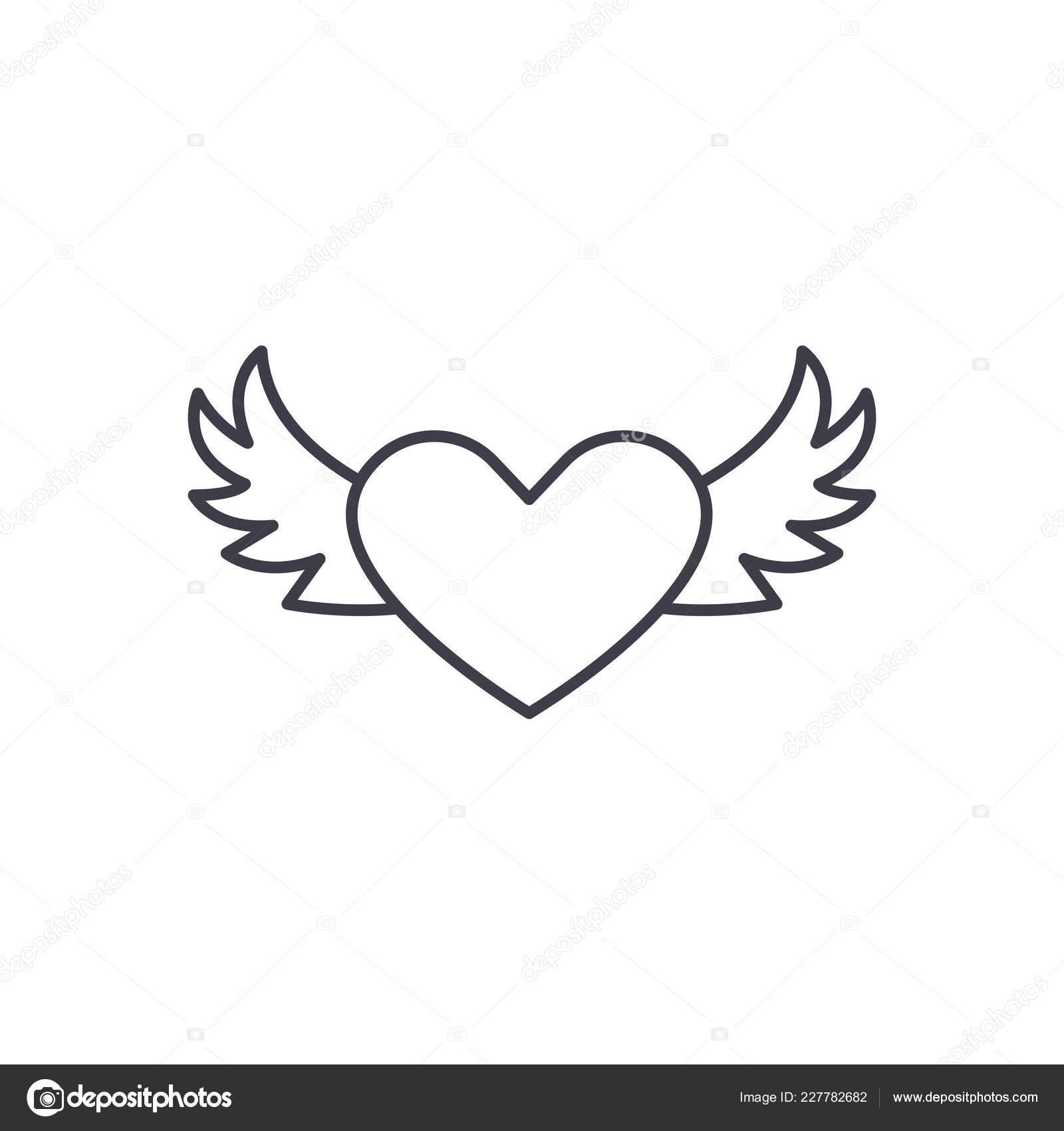 Heart With Wings Line Icon Concept Heart With Wings Vector Linear