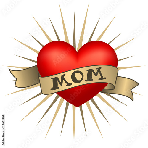 Retro Tattoo Heart With Gold Ribbons And Word Mom Vector Buy