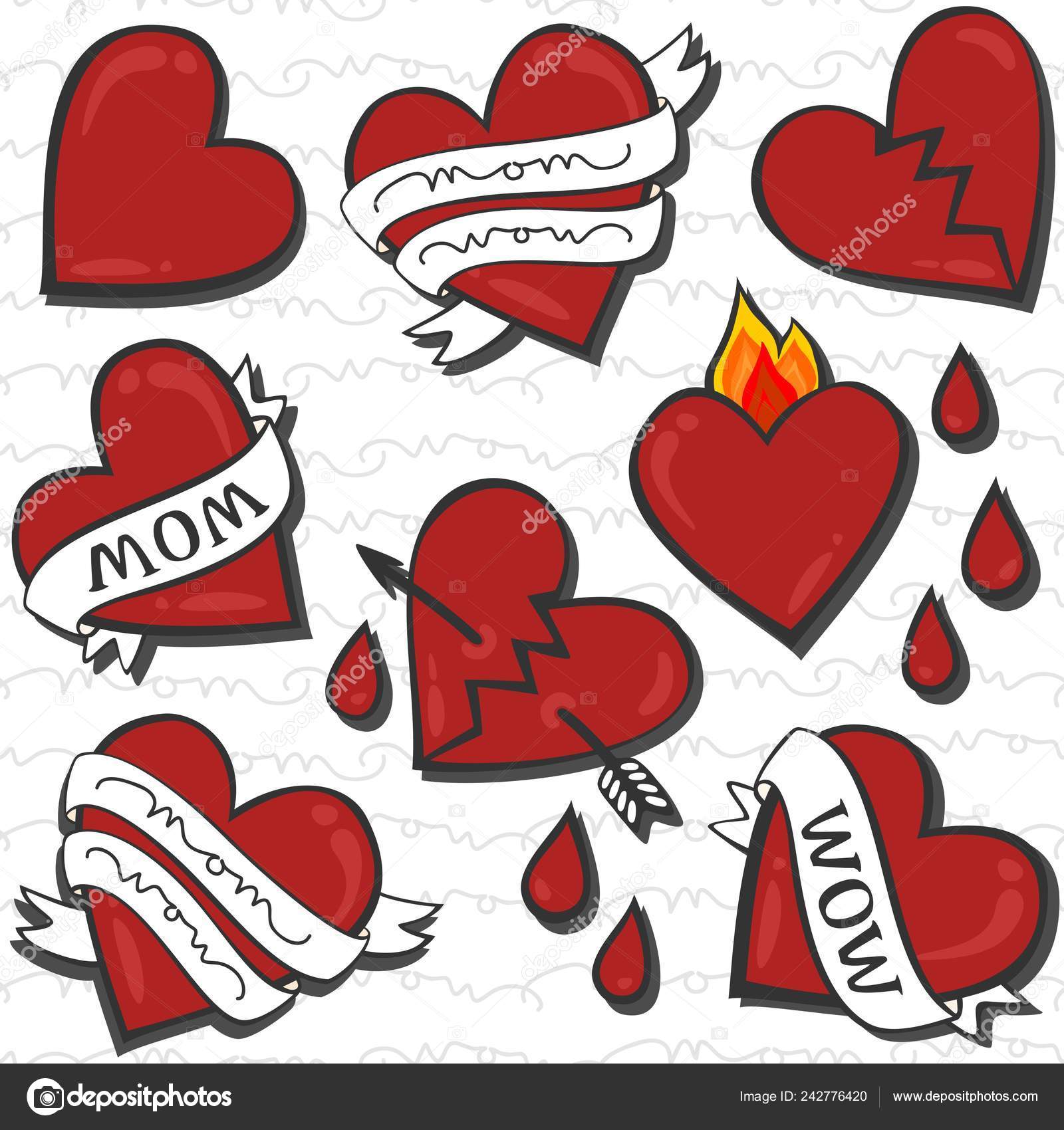 Clip Art Vector Traditional Heart Tattoo Set Stock Eps