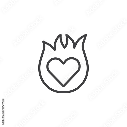 Burning Heart Line Icon Outline Vector Sign Linear Style