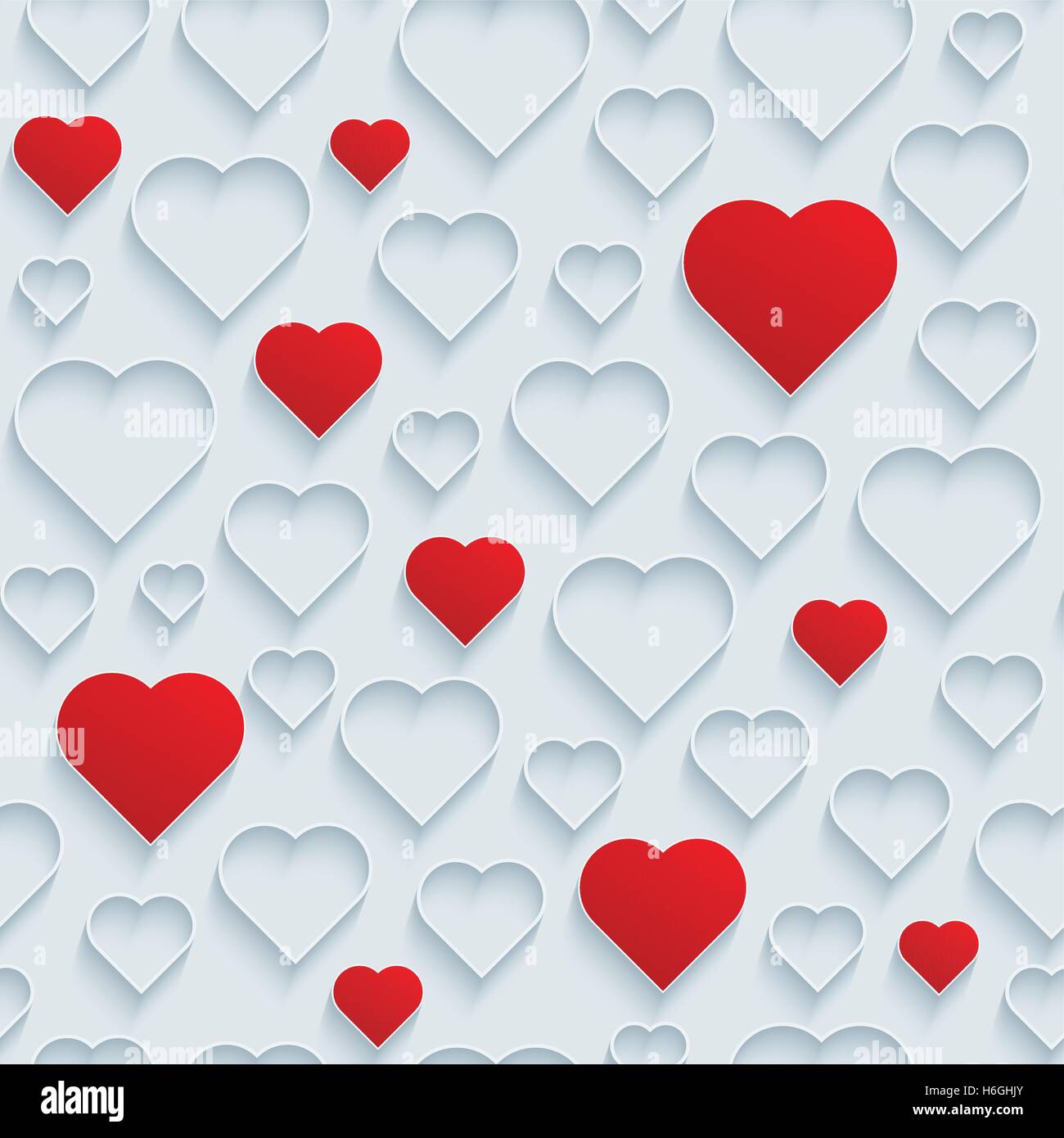 Seamless Pattern With Hand Drawn Red And White Heart Shapes