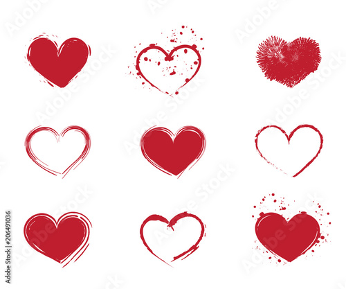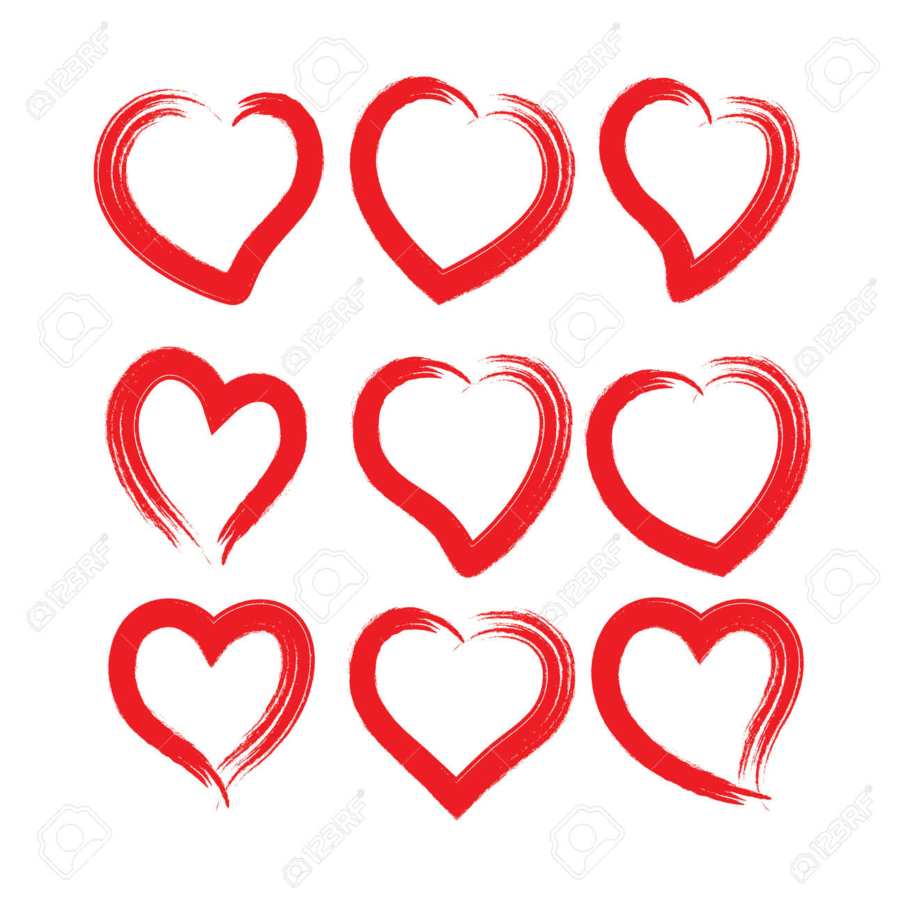 Variety Of Red Paint And Brush Heart Shapes In Vector Format Buy