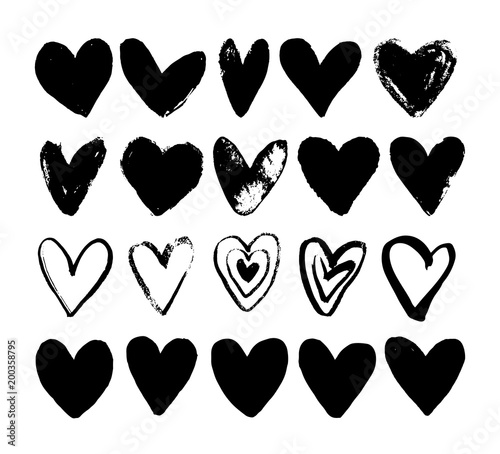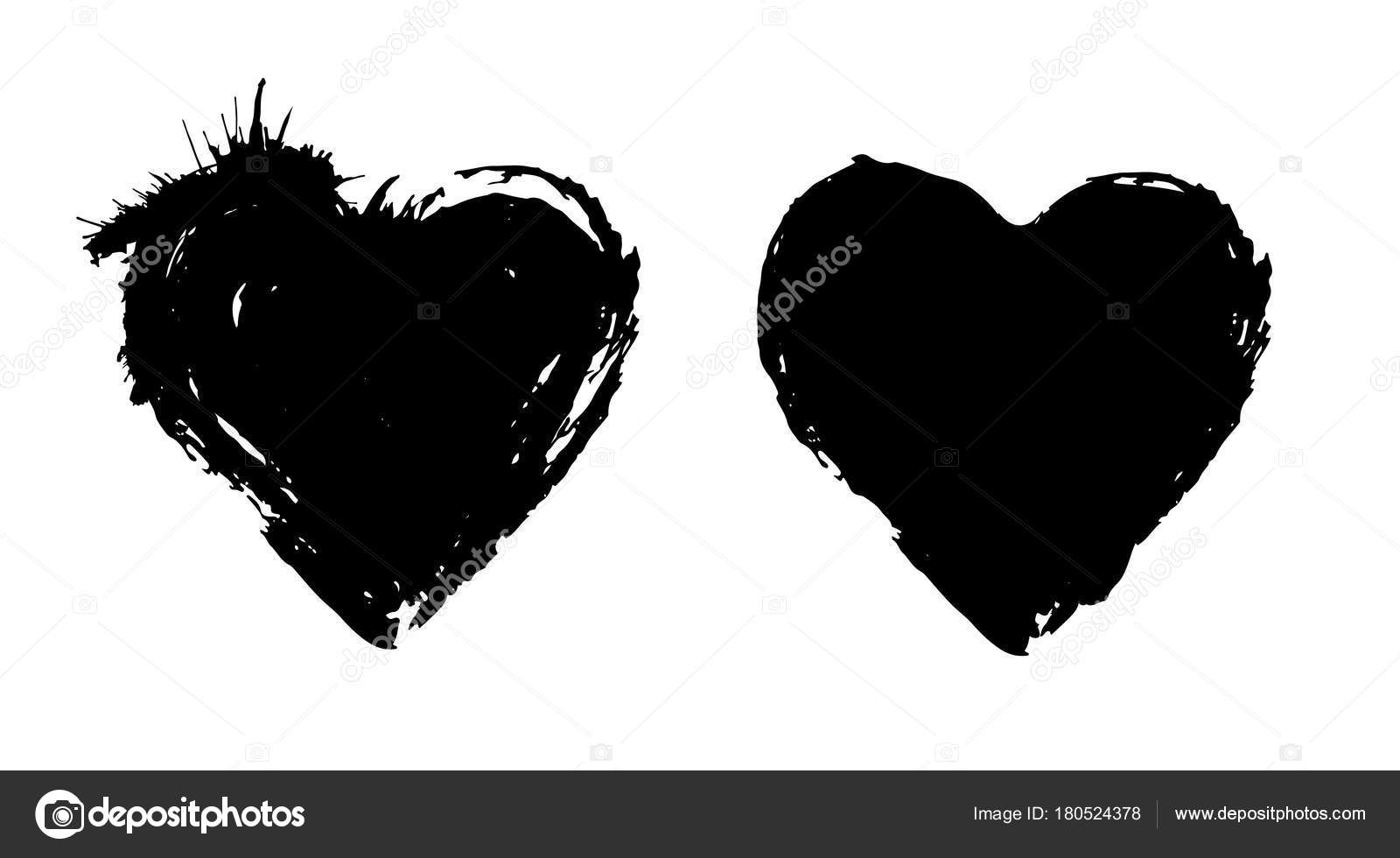 Collection Abstract Hearts Grunge Style Black Paint Ink Brush