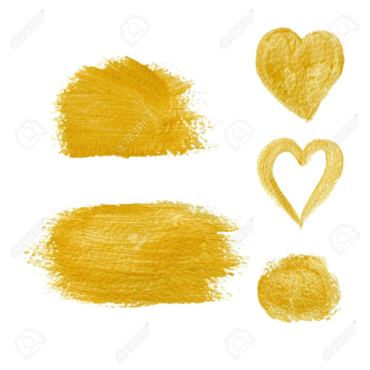Gold Hand Drawn Brush Hearts Vector Illustration Of Grunge Paint