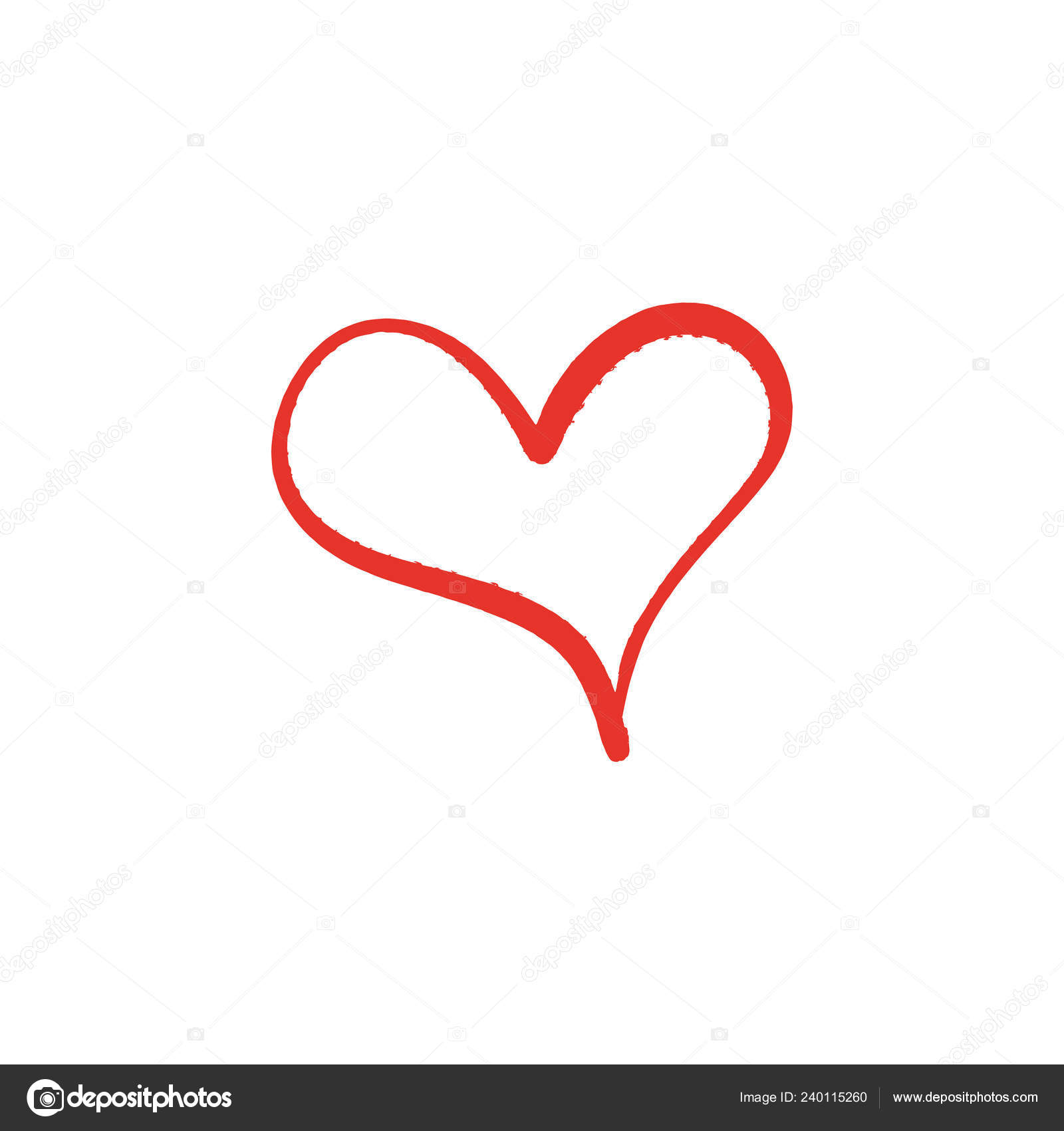 Red Heart Contour Vector Hand Drawn Love Icon Isolated Paint