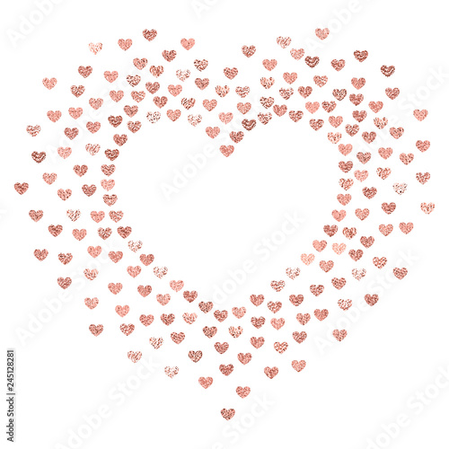 Vector Heart Shaped Background With Rose Gold Foil Confetti Hearts