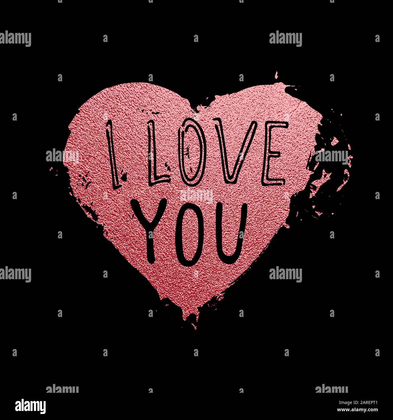 Sweet Card Template With Rose Gold Hand Painted Heart And Love