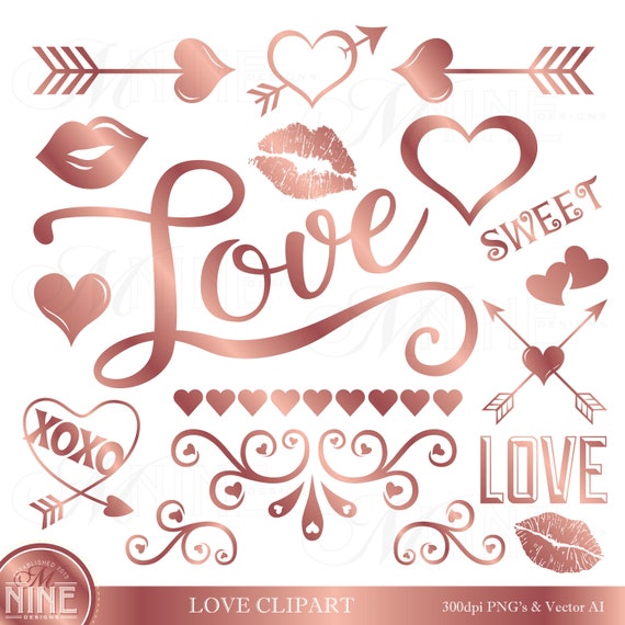 Rose Gold Love Clipart Vector Rose Gold Valentines Clip Art Etsy