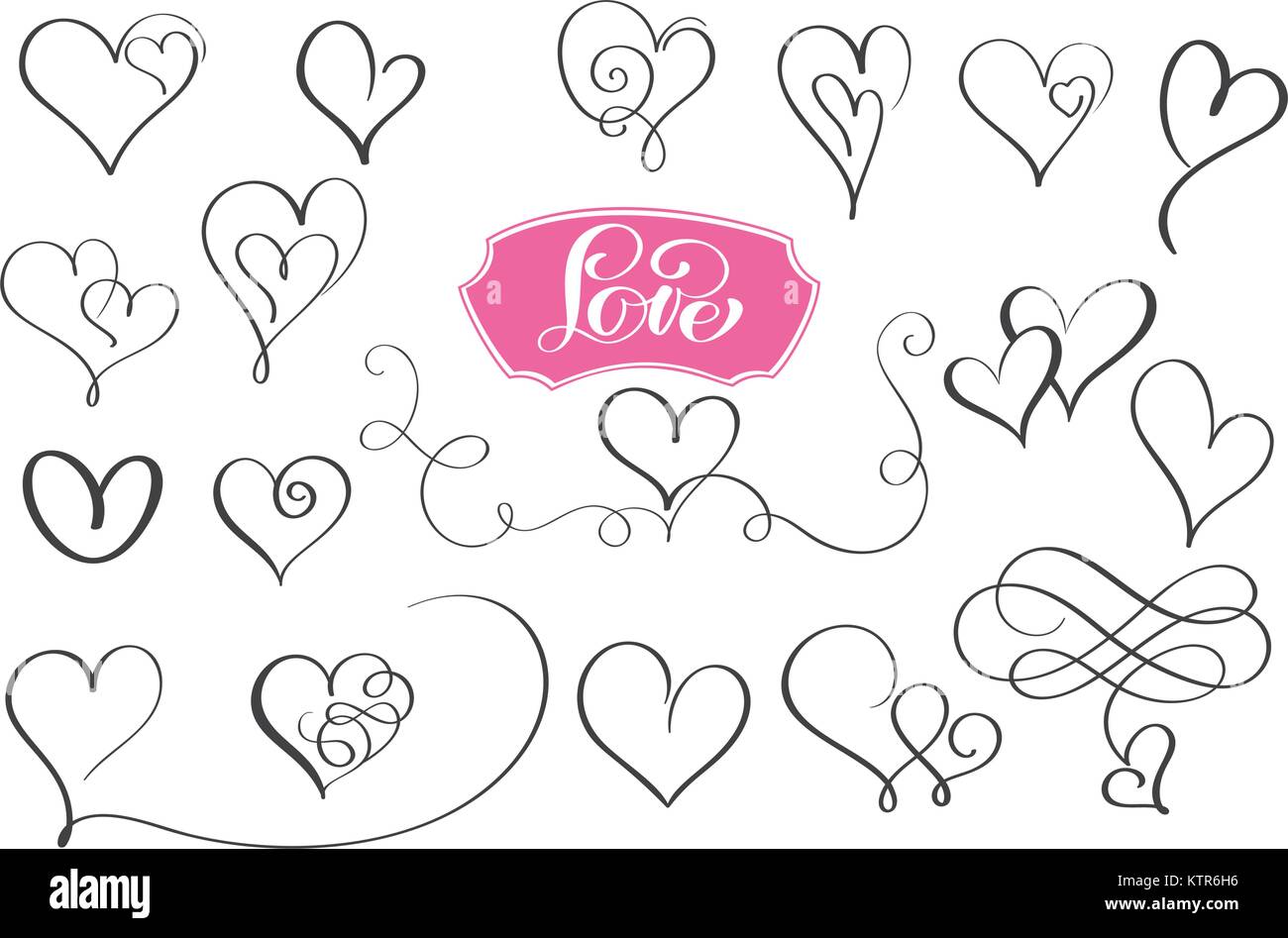 Hand drawn doodle heart collection.