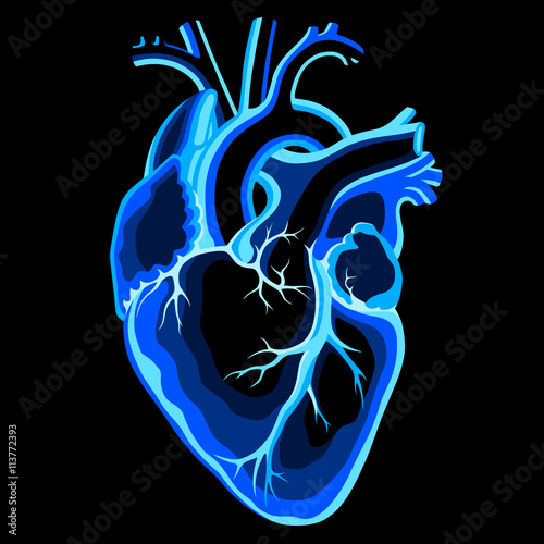 Transparent Blue Human Heart On Black Background Buy This Stock