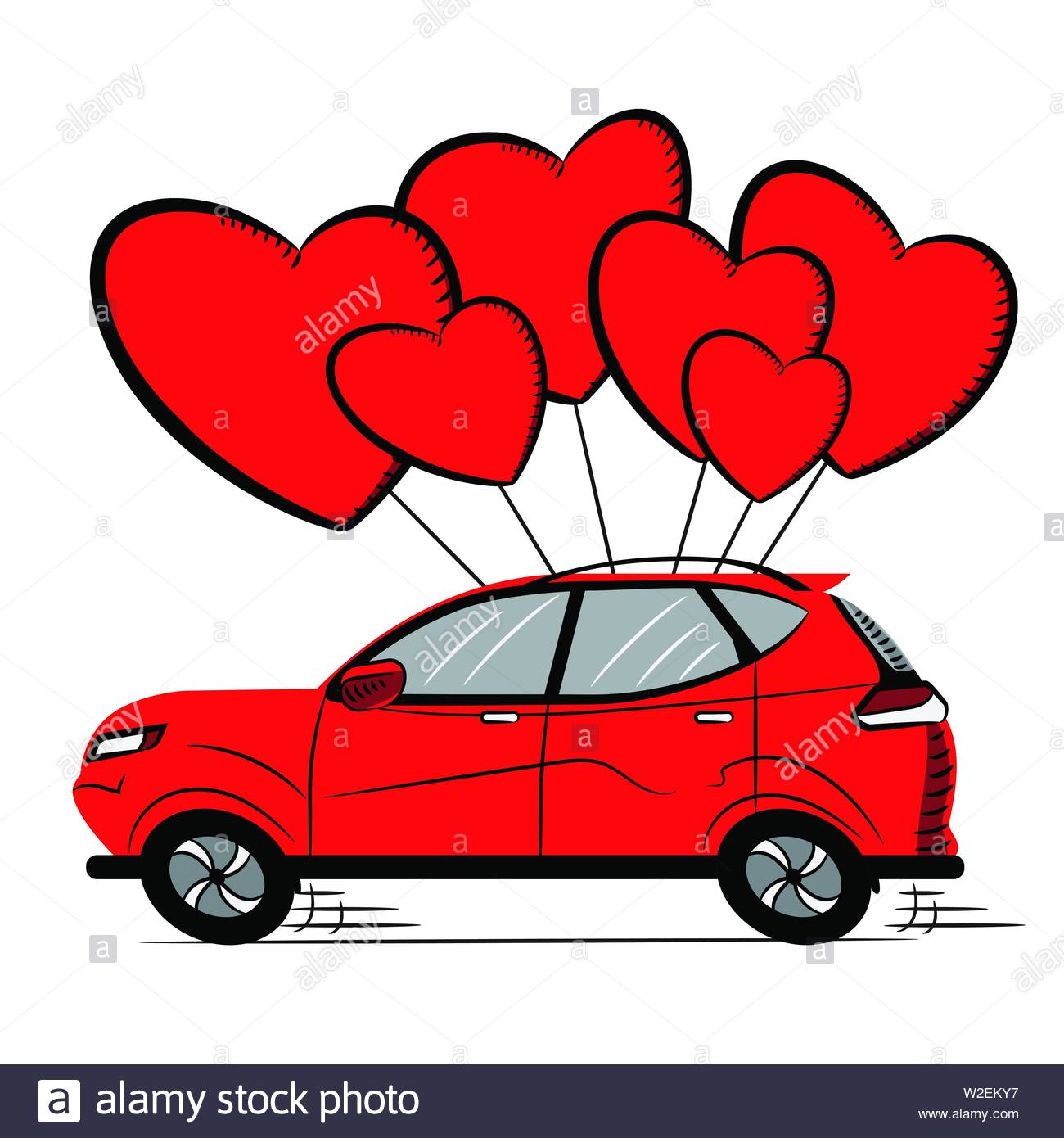 Red Car With Red Hearts Valentine S Day Gift Icon Sketch