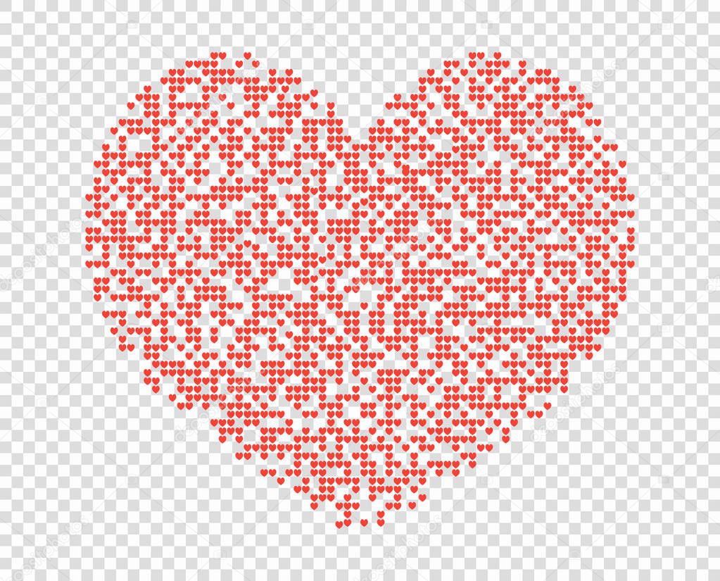 Big Pink Heart Made Of Small Hearts Isolated On Transparent