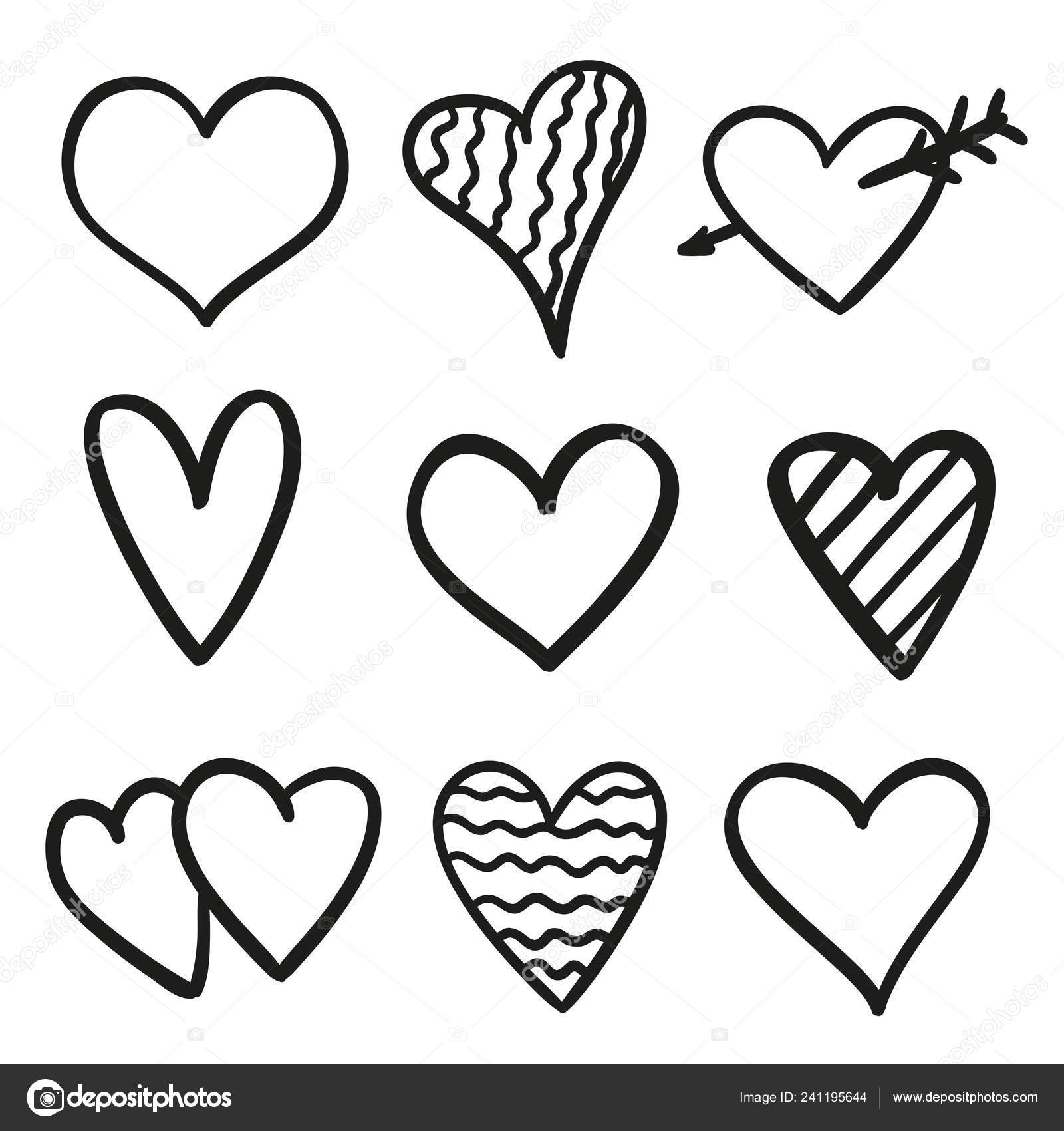 Set Of Outline Hand Drawn Heart Icon Hand Drawn Doodle Grunge