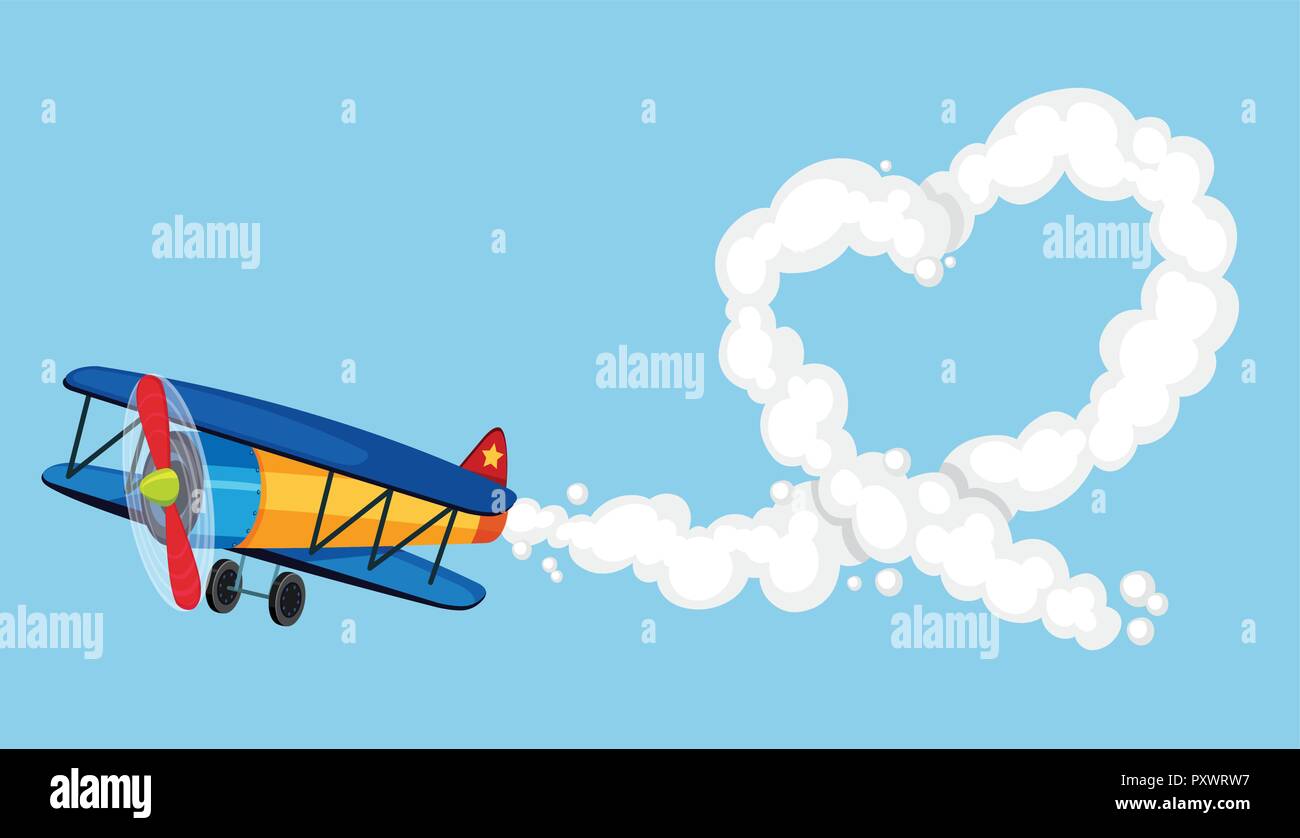 Airplane Flying In Sky And Heart Shaped Smoke Illustration Stock