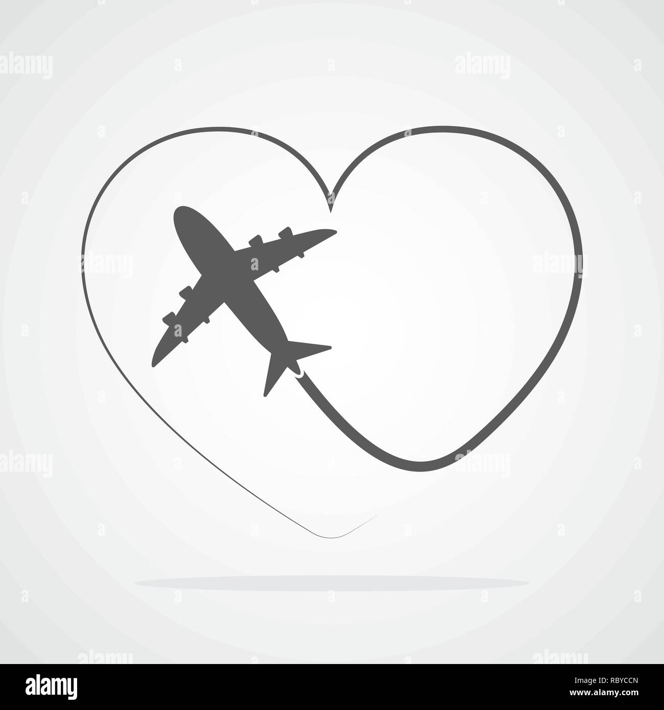 Stock Vector Vector Illustration Of Airplane Drawing A Heart