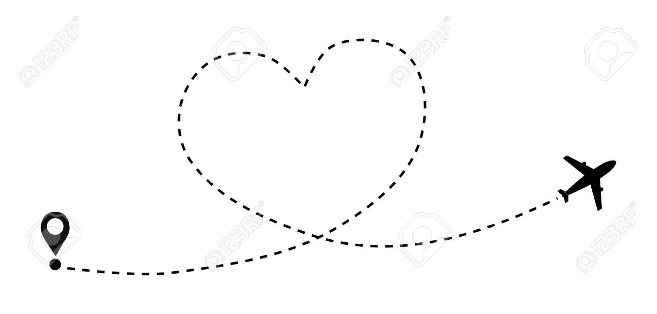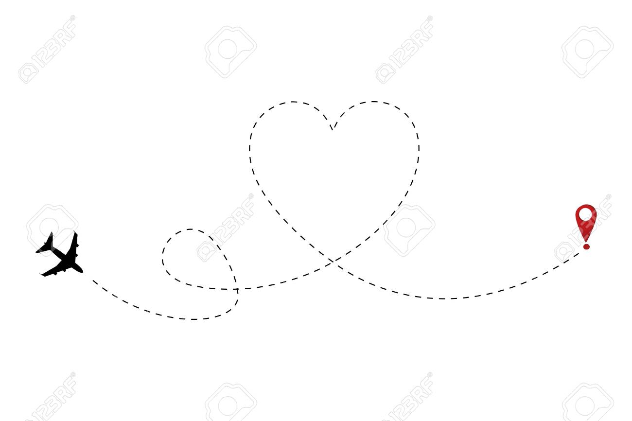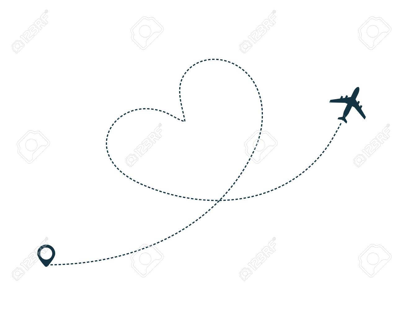 Love Airplane Route Heart Dashed Line Trace And Plane Routes