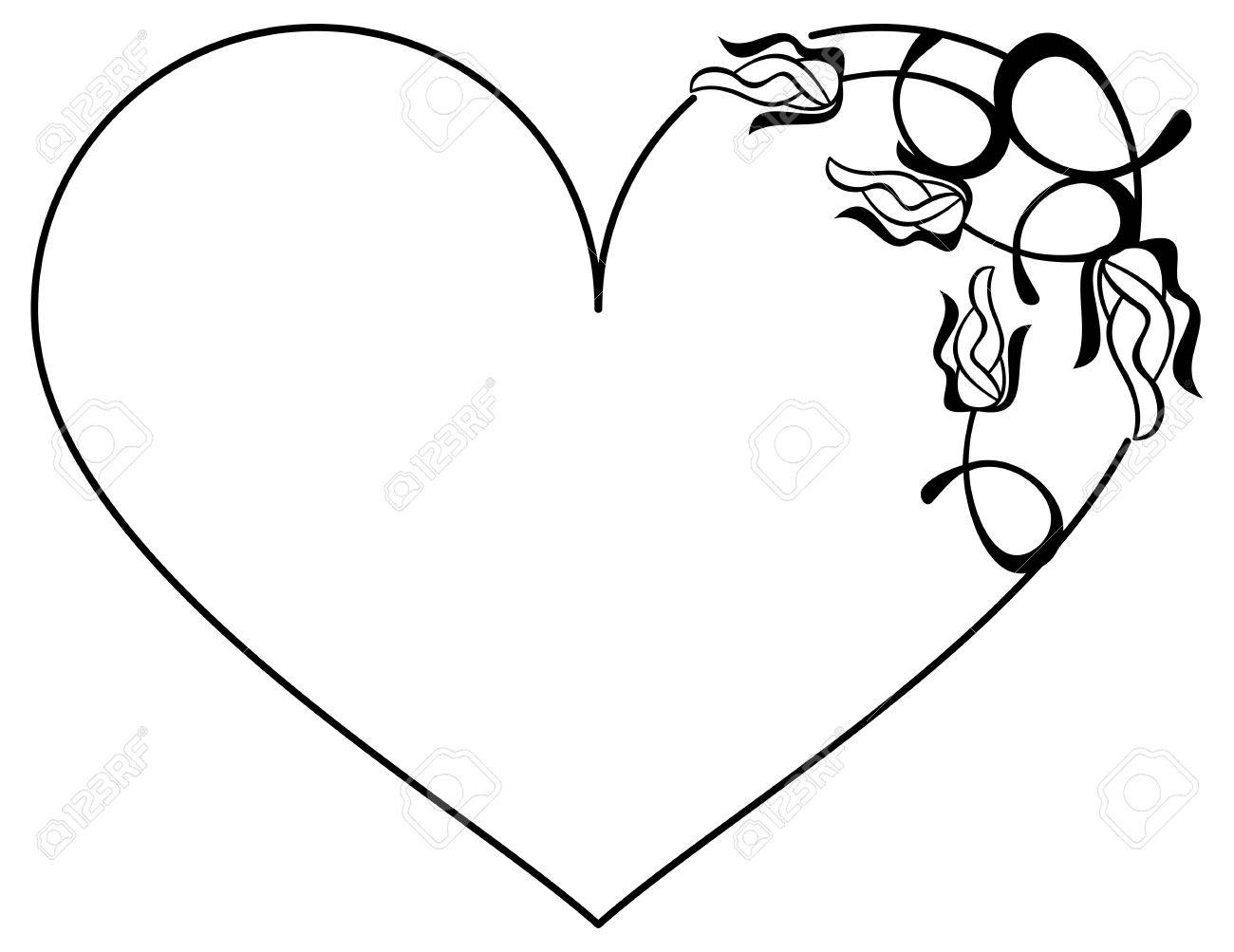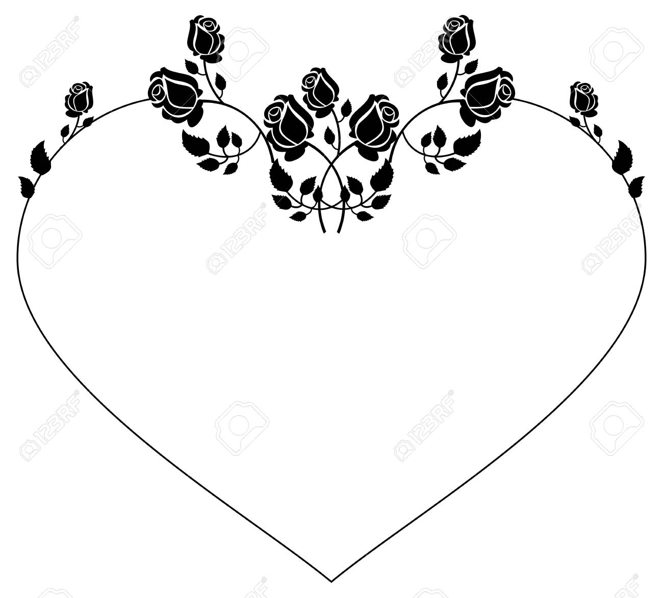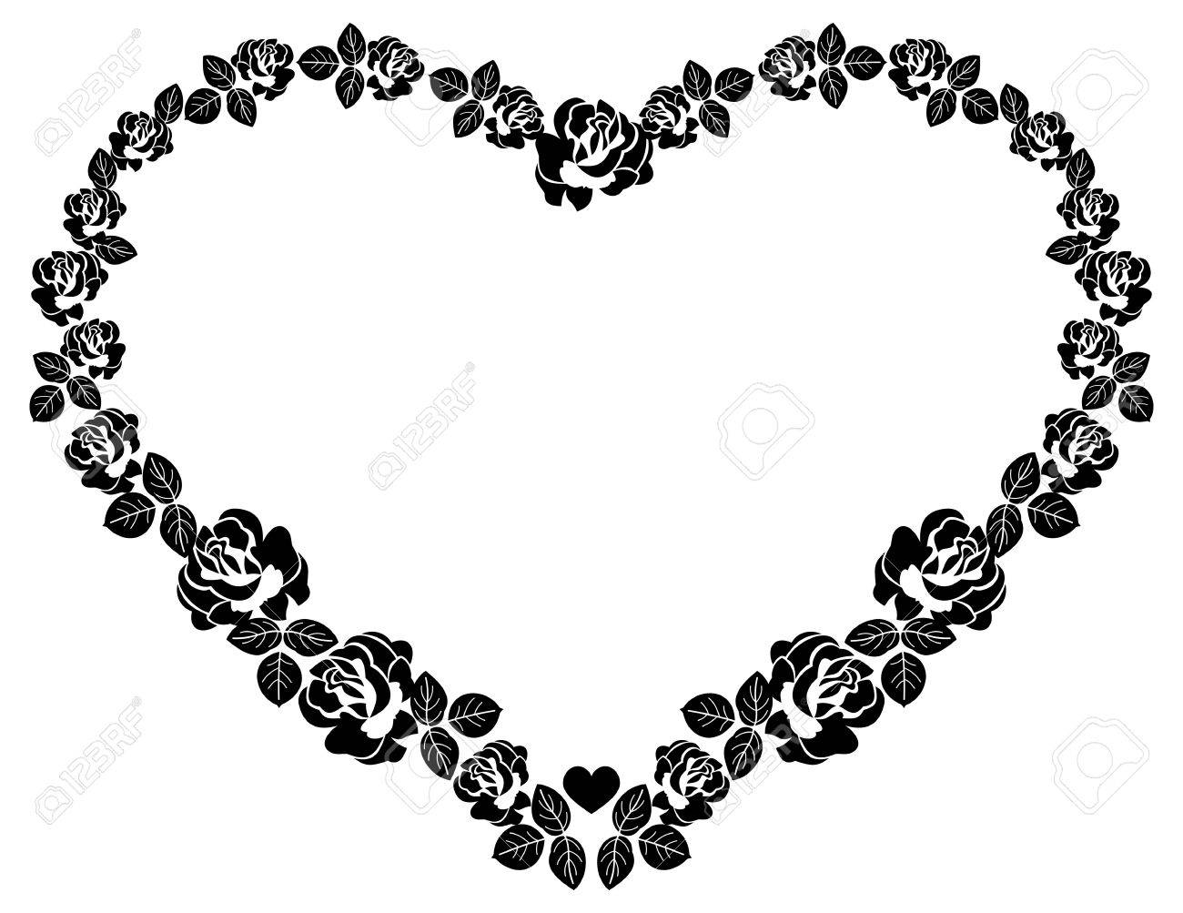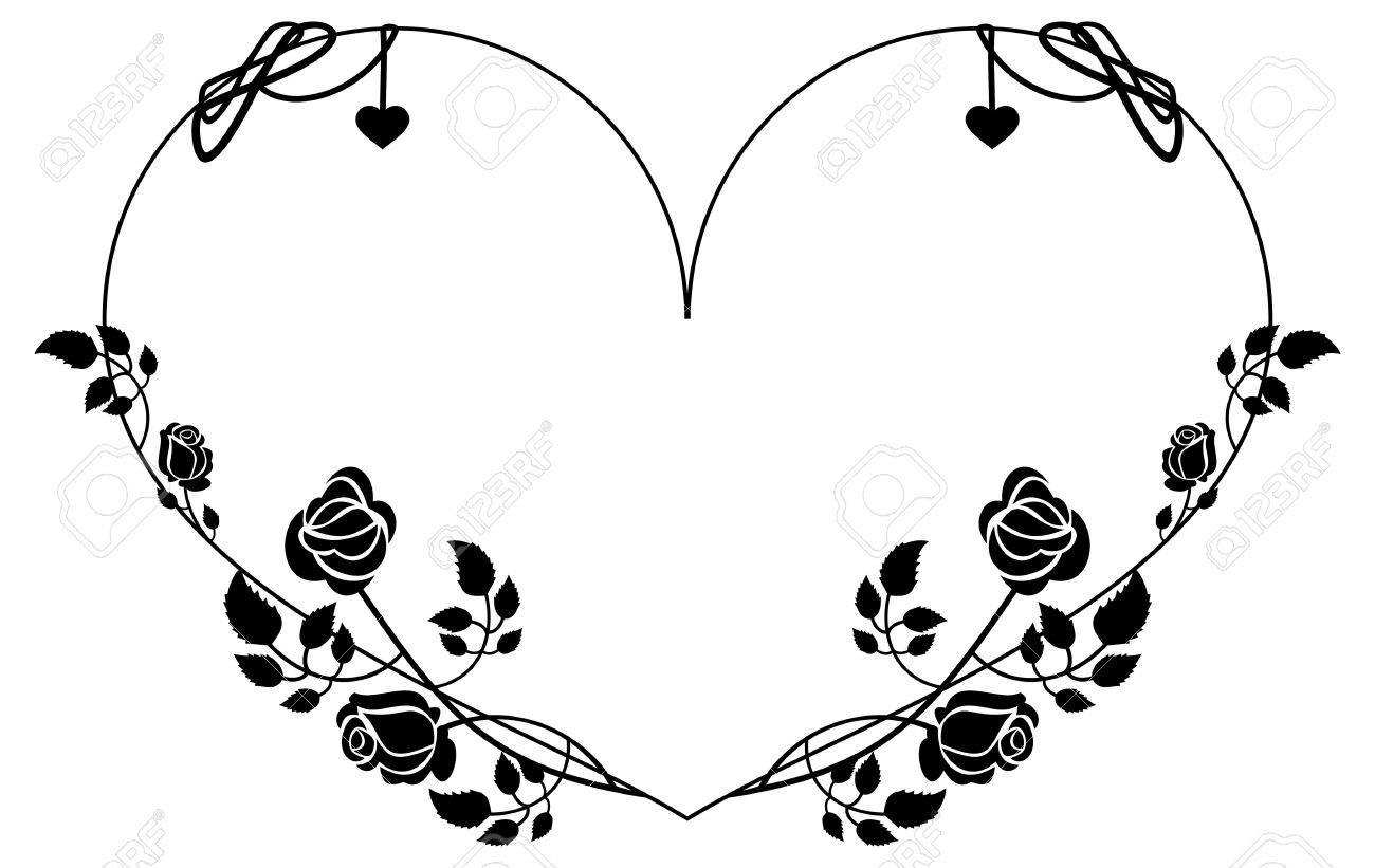 Heart Shaped Silhouette Frame With Roses Vector Clip Art Royalty