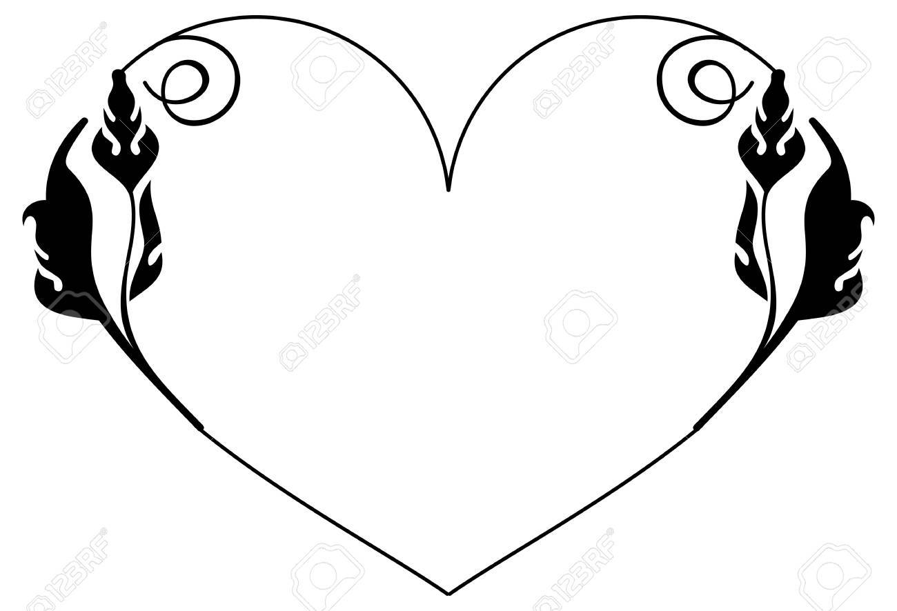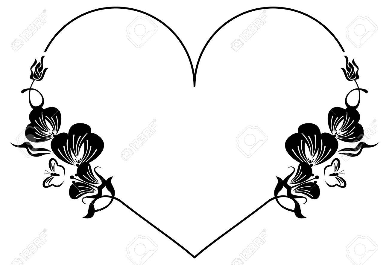 Heart Shaped Silhouette Frame With Decorative Flowers Design