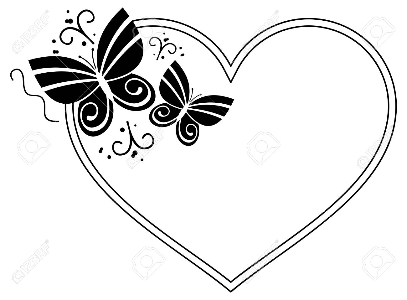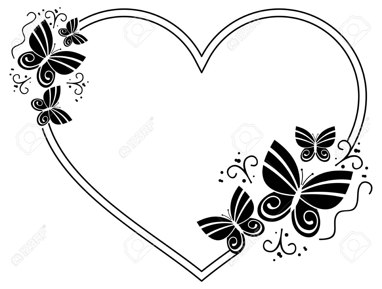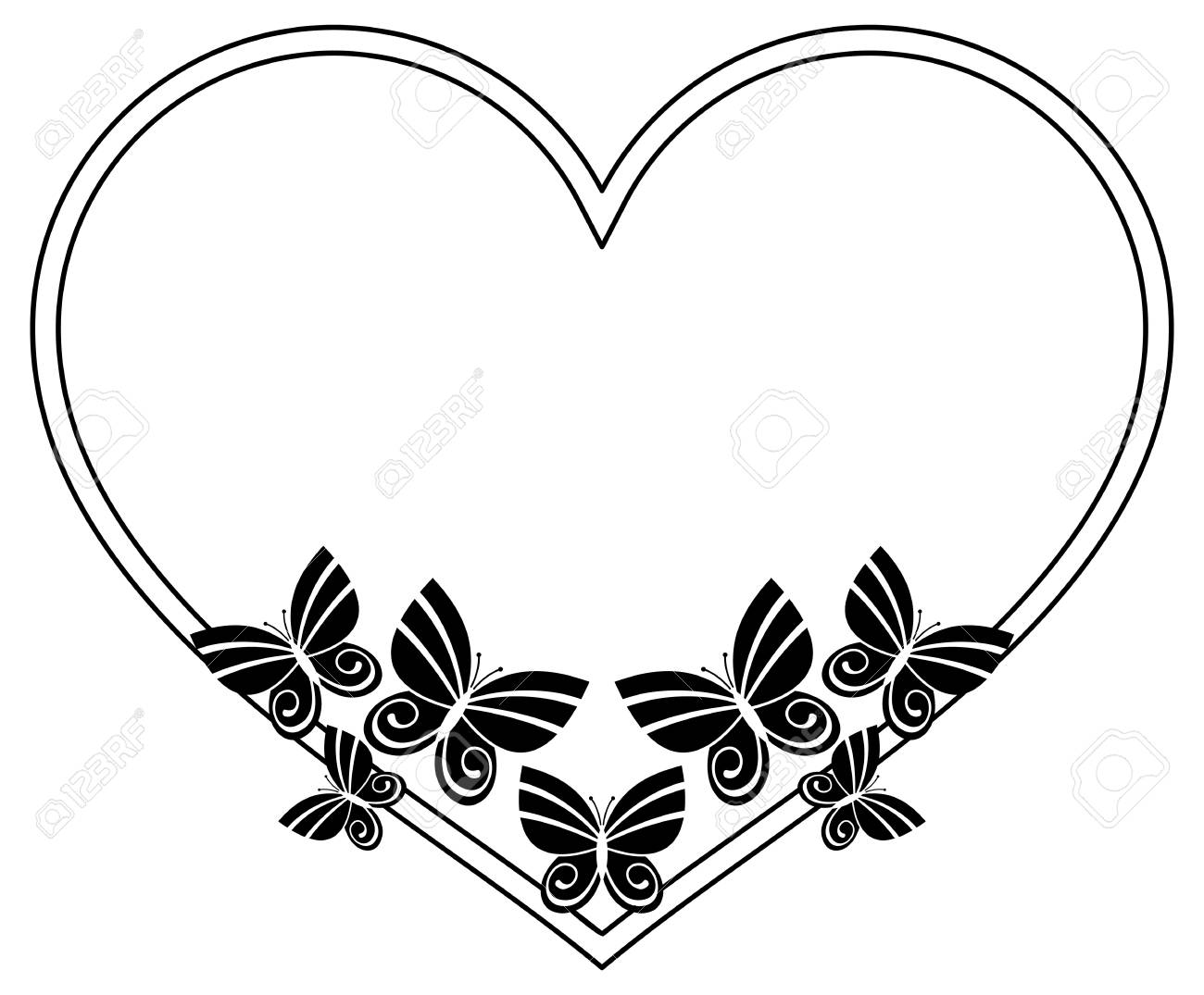 Heart Shaped Silhouette Frame With Butterflies Vector Clip Art