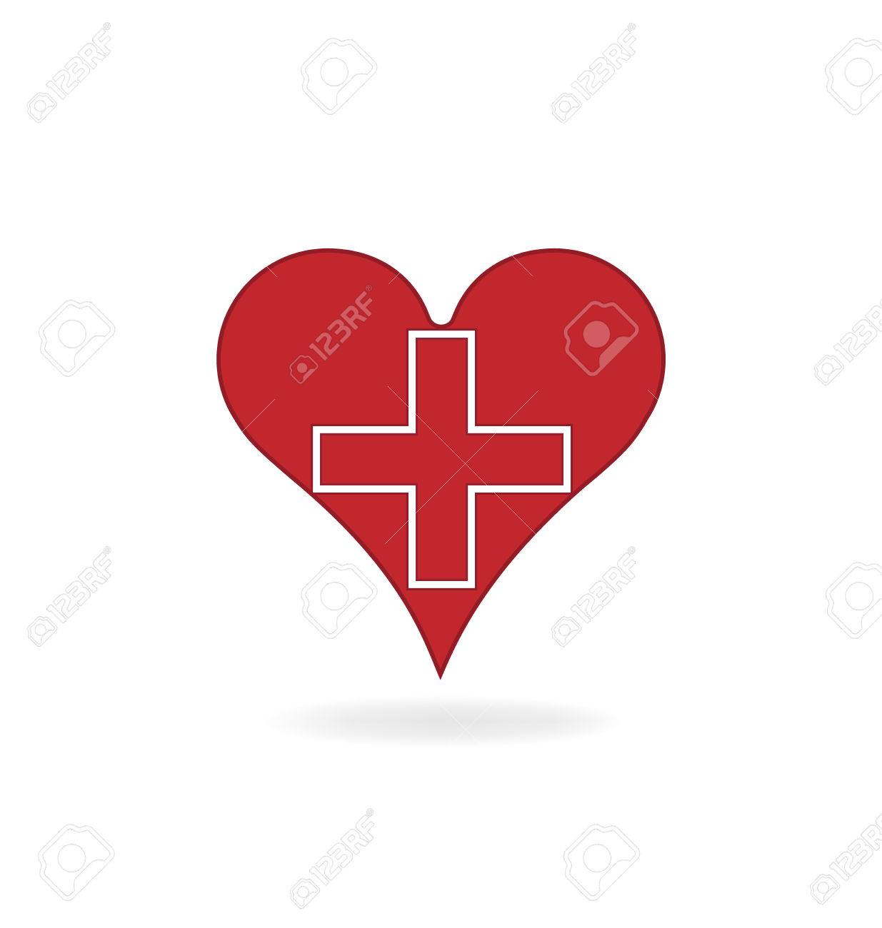 Medical Cross Inside In The Heart Symbol Red Medical Sign