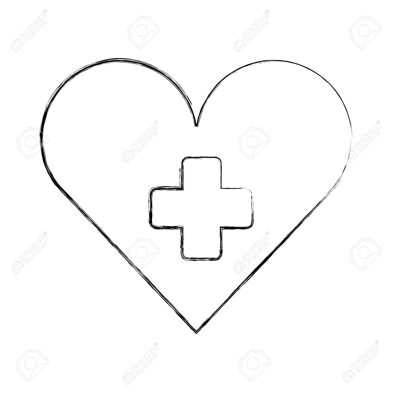 Medical Heart Cross Hospital Symbol Vector Illustration Hand