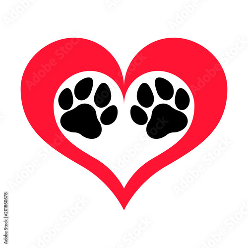 Red Heart Silhouette With A White Paw Print On It Vector Image