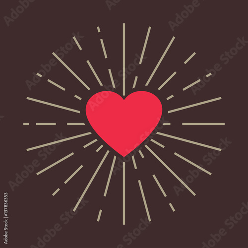 Heart Icon Red Heart Silhouette With Sunburst Frame Valentine