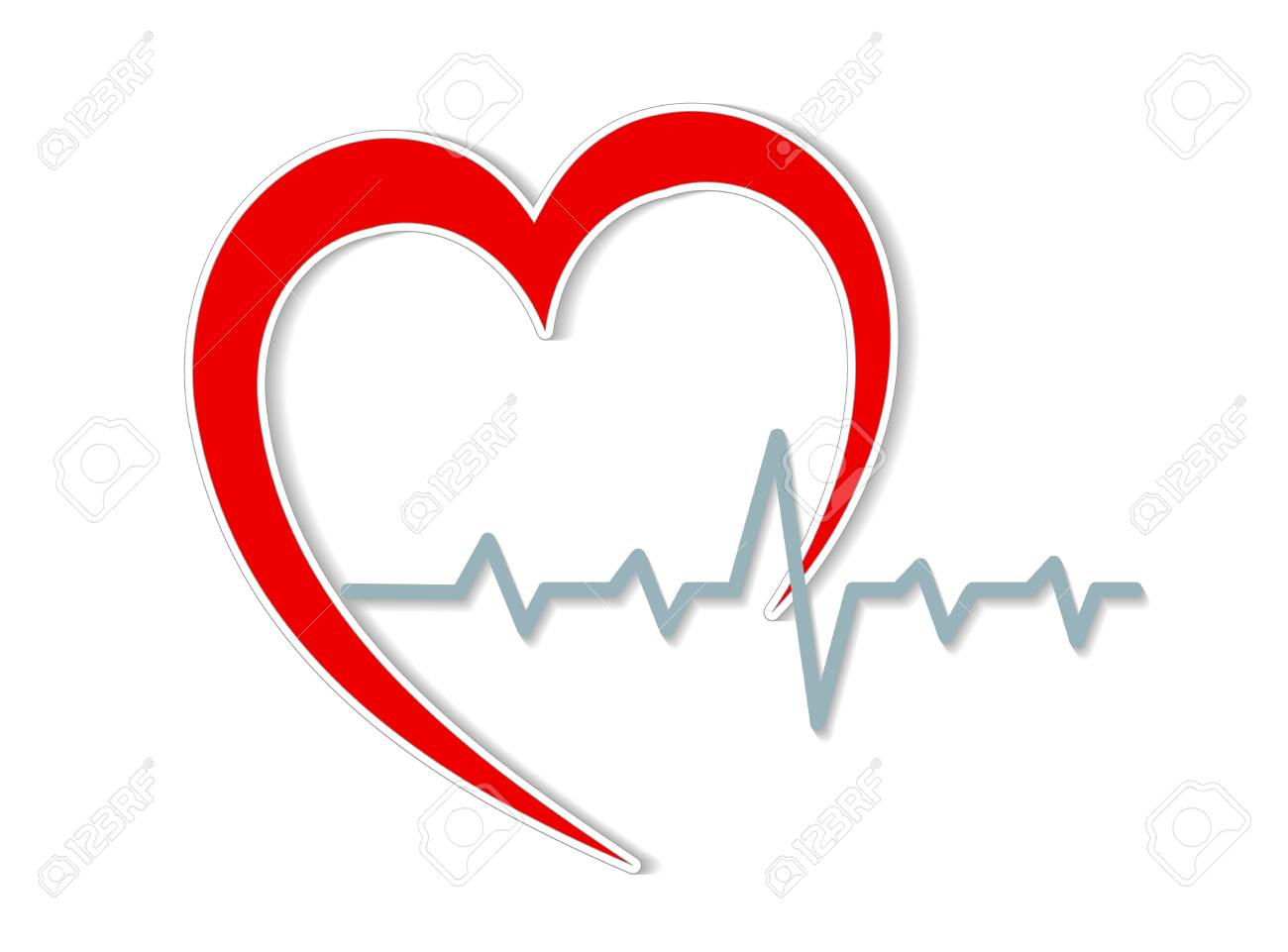 Red Heart Silhouette And Cardiogram On White Stock Vector