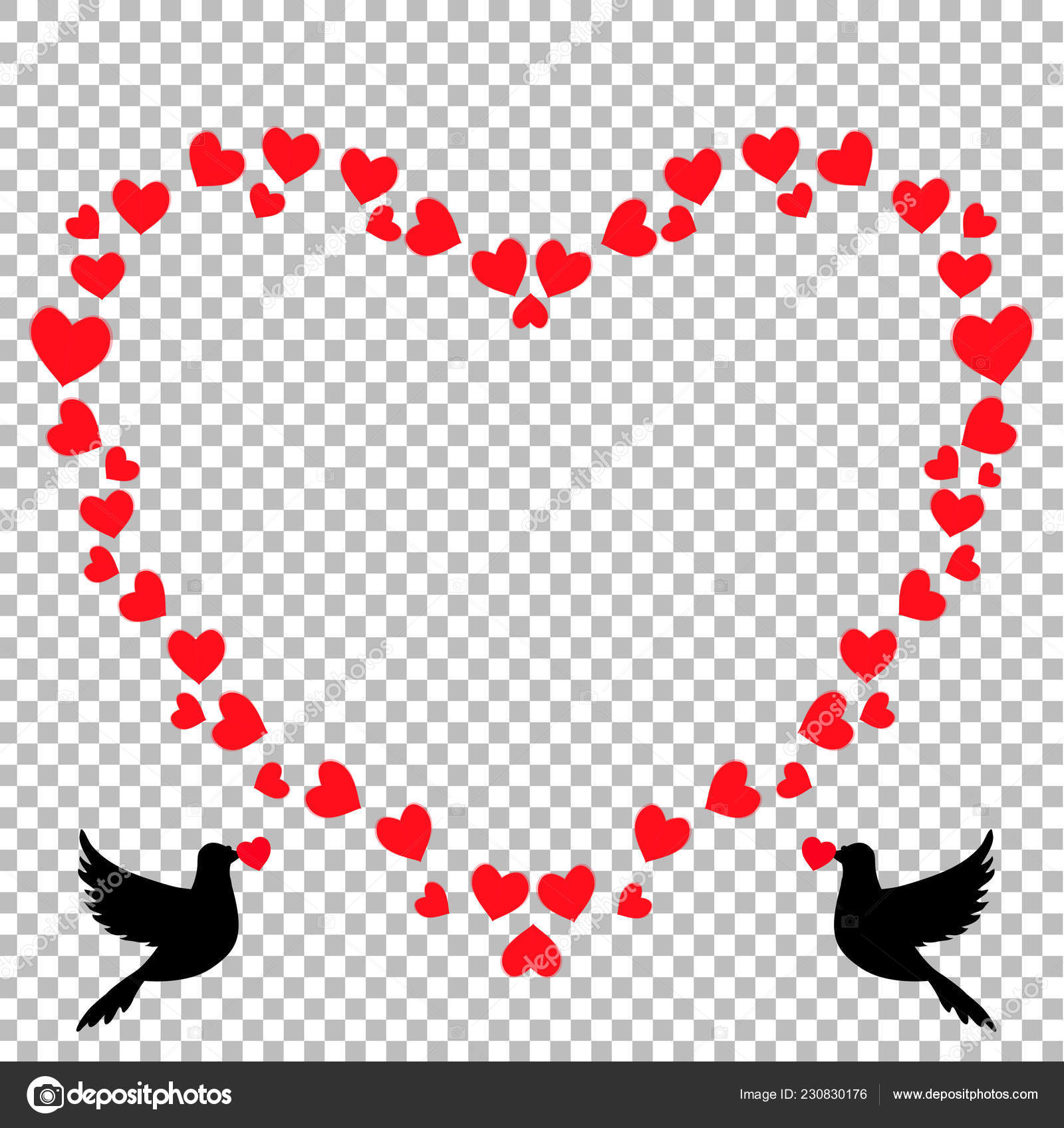 Vector Red Heart Shaped Retro Vintage Border Photo Frame Of Hearts