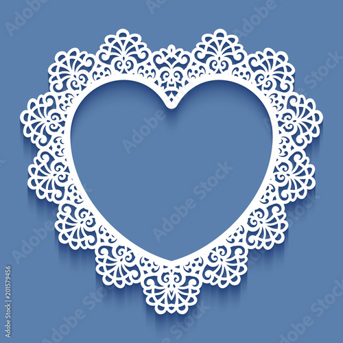 Laser Cut Paper Lace Frame In The Shape Of Heart Vector